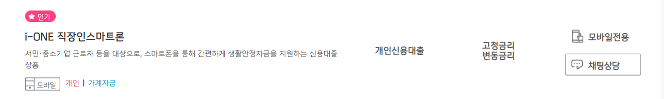 기업은행의 i-ONE 직장인스마트론은 서민 및 중소기업 근로자 등을 대상으로 스마트폰(i-ONE뱅크 앱)을 통해 간편하게 생활안정자금을 지원하는 신용대출 상품입니다. 영업점 방문 없이도 신청이 가능하며, 신속한 대출 실행이 특징입니다.