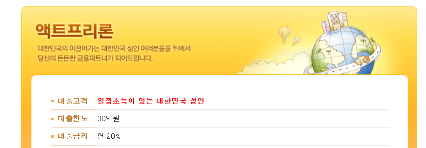 액트캐쉬대부 액트 프리론 대출 조건 한도 금리 신청방법 필요서류